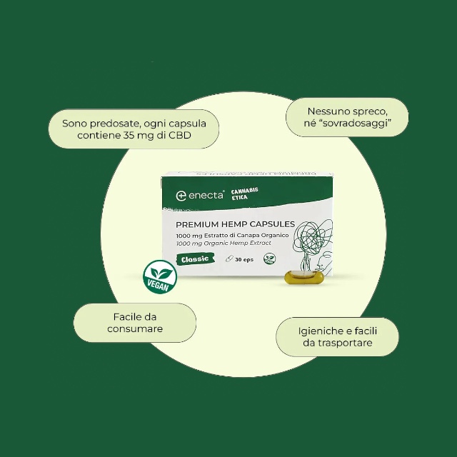 Scopri le Capsule di CBD Enecta Premium Hemp 1000mg, la soluzione pratica e naturale per integrare il CBD nella tua routine quotidiana.
